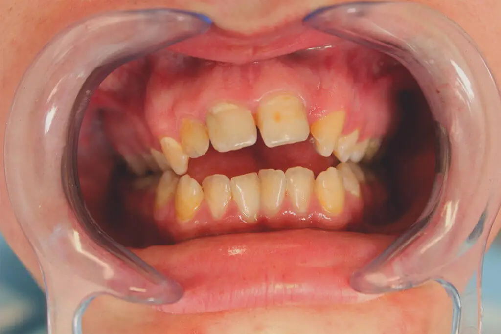 Róbert fiatal férfi páciens, tanuló. Komplex problémával keresett fel, diagnózisa során kiderült, hogy nyitott harapása mellett kétoldali keresztharapása is van, illetve bal felső második kismetsző fogát korábban eltávolították.